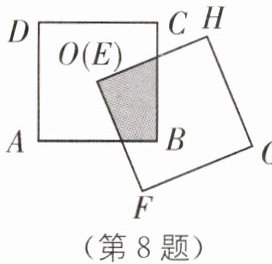 8. 如图,两个边长均为$\sqrt{2}的正方形ABCD和EFGH$,将正方形$EFGH绕正方形ABCD的中心O$(即对角线的交点)旋转,则旋转过程中两个正方形重叠部分(图中阴影)的面积为(