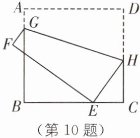 10. 如图,正方形$ABCD的边长为9$,将正方形折叠,使顶点$D落在BC边上的点E$处,折痕为$GH$。若$BE:EC = 2:1$,则线段$CH$的长是(