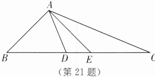 21. 问题:如图,在 $ \triangle ABD $ 中,$ BA = BD $,在 $ BD $ 的延长线上取点 $ E $,$ C $,作 $ \triangle AEC $,使 $ EA = EC $.若 $ \angle BAE = 90^{\circ} $,$ \angle B = 45^{\circ} $,求 $ \angle DAC $ 的度数。