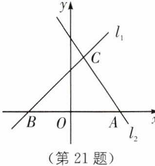 21. 如图,直线$l _ { 1 } : y = x + 3与过点A ( 3, 0 )的直线l _ { 2 }交于点C ( 1, m )$,与$x轴交于点B$.