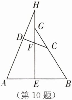 10. 如图,在四边形$ABCD$中,$AD>BC$,$E$,$F分别是AB$,$CD$的中点,$AD$,$BC的延长线分别与EF的延长线交于点H$,$G$,则(