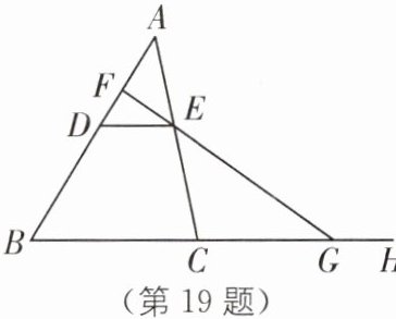 19. 如图,点$D$,$E分别在AB$,$AC$上,$DE// BC$,$F是AD$上一点,$FE的延长线交BC的延长线于点G$。求证: