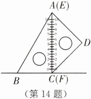 14. 如图,一副含$30^{\circ}和45^{\circ}角的三角板ABC和EDF$拼合在一个平面上,边$AC与EF$重合,$AC= 12cm$。当点$E从点A出发沿AC$方向滑动时,点$F同时从点C出发沿射线BC$方向滑动。当点$E从点A滑动到点C$时,点$D$运动的路径长为____$cm$;连接$BD$,则$\triangle ABD$的面积最大值为____$cm^{2}$。
