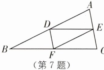 7. 如图,在$\triangle ABC$中,$AB > AC$,点$D$,$E分别是边AB$,$AC$的中点,点$F在BC$边上,连接$DE$,$DF$,$EF$,则添加下列哪一个条件后,仍无法判断$\triangle FCE与\triangle EDF$全等的是(