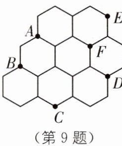 9. 如图是八个全等的正六边形紧密排列在同一平面上的情形,根据图中标示的各点位置,判断与$\triangle ACD$全等的是(
