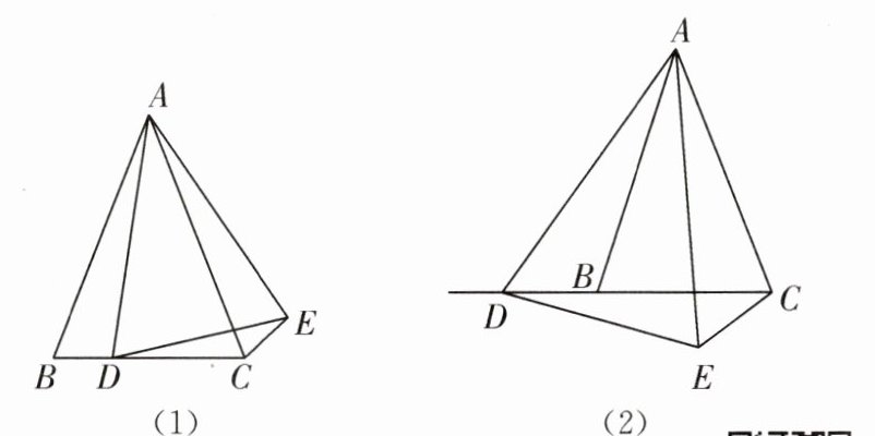 (1)∵∠DAE=∠BAC,∴∠DAE-∠CAD=∠BAC-∠CAD.∴∠CAE=∠BAD.在△DAB和△EAC中,$\left\{\begin{array}{l} AB=AC,\\ ∠BAD=∠CAE,\\ AD=AE,\end{array}\right. $∴△DAB≌△EAC(SAS).