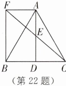 22. 如图,在$\triangle ABC$中,$D是BC$的中点,$E是AD$的中点,过点$A作AF// BC交CE的延长线于点F$。