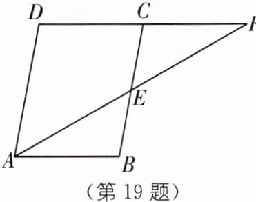 19. 如图,在平行四边形$ABCD$中,$E为BC$的中点,$AE的延长线与DC的延长线相交于点F$。求证: