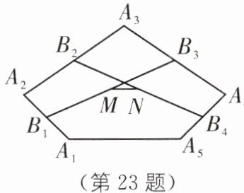 23. 如图,在五边形 $ A_{1}A_{2}A_{3}A_{4}A_{5} $ 中,$ B_{1},B_{2},B_{3},B_{4} $ 分别是 $ A_{1}A_{2},A_{2}A_{3},A_{3}A_{4},A_{4}A_{5} $ 的中点,$ M $ 是 $ B_{1}B_{3} $ 的中点,$ N $ 是 $ B_{2}B_{4} $ 的中点。若 $ A_{1}A_{5} = a $,求线段 $ MN $ 的长。