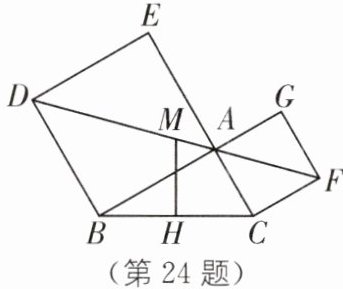 24. 如图,四边形 $ ABDE,ACFG $ 是 $ \triangle ABC $ 外侧的正方形,$ M $ 是 $ DF $ 的中点,$ MH \perp BC $ 于点 $ H $,求证: