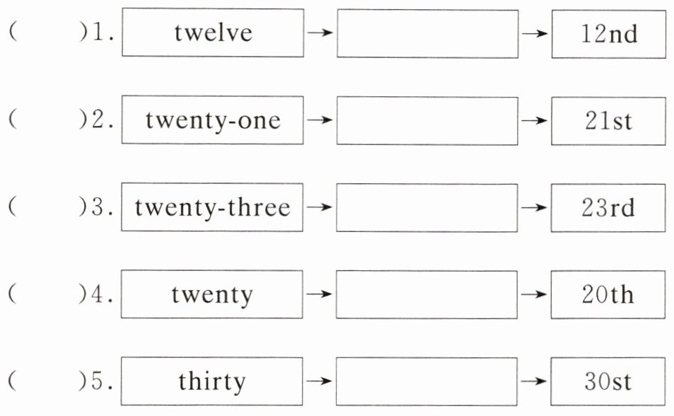 1. twelfth F 2. twenty-first T 3. twenty-third T 4. twentieth T 5. thirtieth F