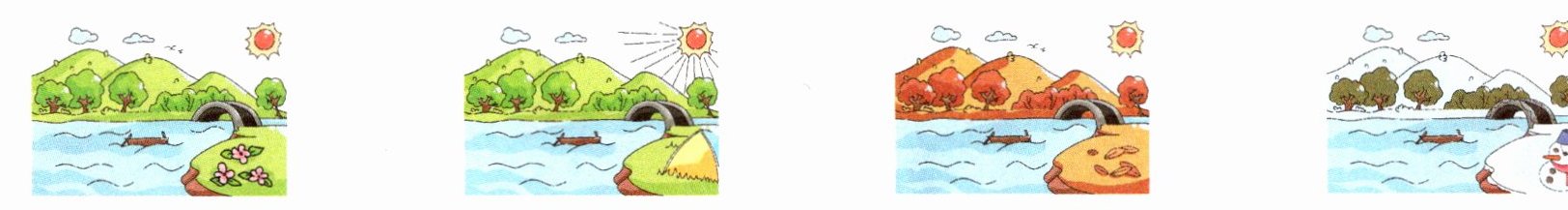 二 根据下面图片中的变化,写出每幅图所代表的季节名词吧。