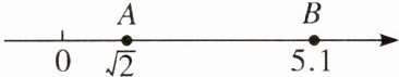 9. 如图,在数轴上$A$,$B两点表示的数分别为\sqrt{2}和5.1$,则$A$,$B$两点之间表示整数的点共有____个。