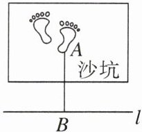 8.如图是某跳远运动员在一次比赛中跳远时沙坑的示意图,测量成绩时先使皮尺从后脚脚跟的点$A处开始并与起跳线l垂直于点B$,然后记录$AB$的长度,这样做的理由是( )