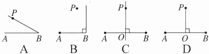 7.过点$P向线段AB$所在直线画垂线,画图正确的是( )