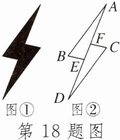 18.图①是一个安全用电标记图案的内部,可以抽象为图②的几何图形,其中$BE// CF$.若$\angle AFC= 80^{\circ}$,则$\angle BEA$的度数是______.