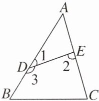 13.如图,三角形$ABC的两边AB$,$AC被DE$所截,下列判断错误的是( )