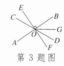 3.如图,已知$AB$,$CD$,$EF三条直线交于点O$,且$OE\perp AB$,$\angle COE= 20^{\circ}$,$OG平分\angle BOD$,则$\angle DOG$的度数是( )