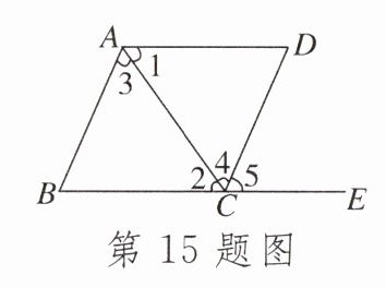 15.如图,由下列条件不能得到$AB// CD$的是( )