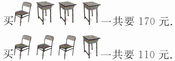 (1) 设每把椅子 $x$ 元, 每张桌子 $y$ 元. 根据题意, 得 $\left\{\begin{array}{l} x + 3y = 170,\\ 3x + y = 110,\end{array}\right.$ 解得 $\left\{\begin{array}{l} x = 20,\\ y = 50.\end{array}\right.$