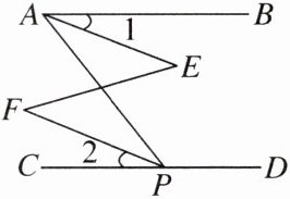 又$\because ∠1=∠2,\therefore ∠EAP=∠FPA.\therefore AE// PF.\therefore ∠E=∠F.$