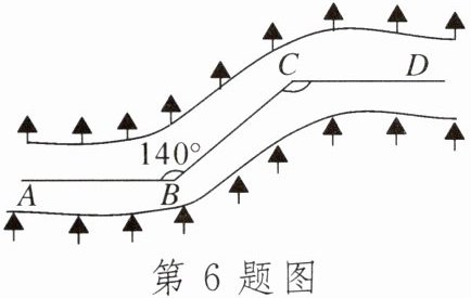 6.如图,一条公路两次转弯后又回到了原来的方向,即$AB// CD$.如果第一次转弯时$\angle B= 140^{\circ}$,那么$\angle C$的度数为______.