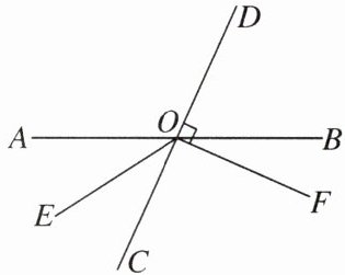 $\because OF⊥OD,\therefore ∠DOF=90^{\circ }$.又$\because ∠BOF=24^{\circ },\therefore ∠BOD=$