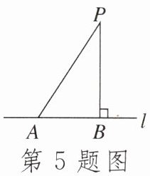 5.如图,点$P在直线l$外,$PB\perp l于点B$,点$A为直线l$上另一点,则$PA与PB的大小关系是PA$______$PB$,理由是______.