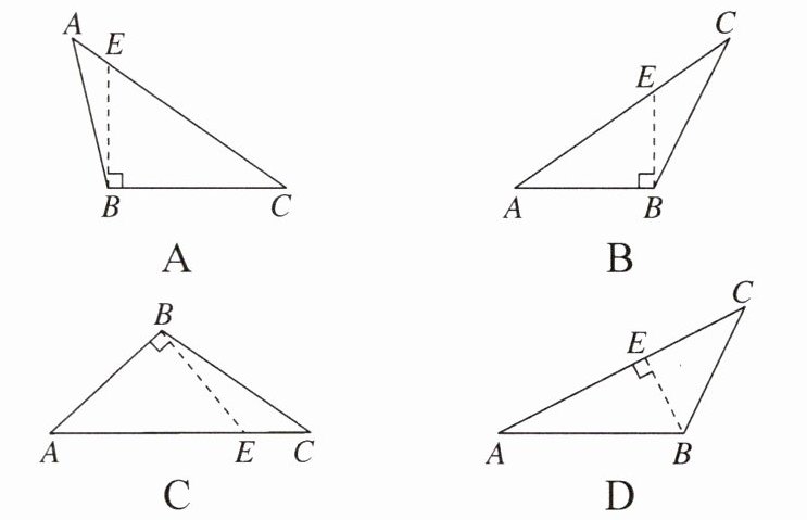 1.下面四个图形中,线段BE是△ABC的高的图形是( )