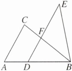 2. 如图,已知△ABC与△DEB全等,其中点D在边AB上,AC//DE,∠E的对应角是( )
