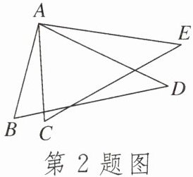 2.如图,在$\triangle ABD和\triangle ACE$中,$AB = AC$,$AD = AE$,要证$\triangle ABD\cong\triangle ACE$,需补充的条件是 ( )