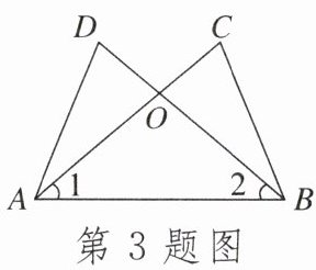 3.如图,$AC$,$BD相交于点O$,$\angle 1 = \angle 2$,若要利用“SAS”说明$\triangle ACB\cong\triangle BDA$,则还需要加上条件 ( )