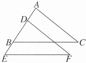 ∴∠A=∠EDF。在△ABC 和△DEF 中,$\left\{\begin{array}{l} AB=DE,\\ ∠A=∠EDF,\\ AC=DF,\end{array}\right.$