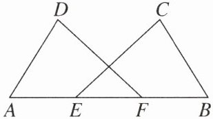 【答案】:$\because AE = BF$,$\therefore AE + EF = BF + EF$,即$AF = BE$。在$\triangle DAF$和$\triangle CBE$中,$\begin{cases}AD = BC\\\angle A = \angle B\\AF = BE\end{cases}$,$\therefore\triangle DAF\cong\triangle CBE(SAS)$,$\therefore DF = CE$。