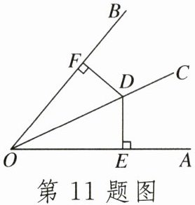 11. 如图,$DE⊥OA$于E,$DF⊥OB$于F,$DE= DF$,$∠AOD= 25^{\circ }$,则$∠EDF$的度数是______.