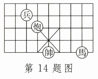 14. 如图,在象棋棋盘上建立平面直角坐标系,使“帥”位于点$(-2,-2)$,“馬”位于点$(1,-2)$,则“兵”位于点______.