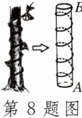 8.我国古代有这样一道数学问题:“枯木一根直立地上,高二丈,周三尺,有葛藤自根缠绕而上,五周而达其顶,问葛藤之长几何?”题意是:如图所示,把枯木看作一个圆柱体,因一丈是十尺,则该圆柱的高为20尺,底面周长为3尺,有葛藤自点A处缠绕而上,绕五周后其末端恰好到达点B处.则问题中葛藤的最短长度是______尺.