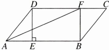 4. 在□ABCD中,过点D作DE⊥AB于点E,点F在CD上,且DF= BE,连接AF,BF。