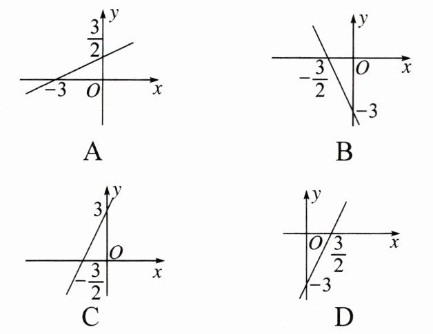 9. 在平面直角坐标系中,一次函数 $ y = 2 x + 3 $ 的图象是( )