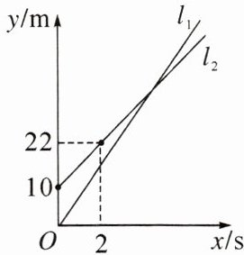 3. 甲、乙两人进行赛跑,甲比乙跑得快,现在甲让乙先跑10米,甲再起跑. 图中$l_1$和$l_2$分别表示甲、乙两人跑步的路程y(m)与甲跑步的时间x(s)之间的函数关系,其中$l_1$的解析式为$y_1= 8x,$问甲追上乙用了多长时间?