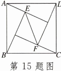 15. 如图是我国古代著名的“赵爽弦图”的示意图,此图是由四个全等的直角三角形拼接而成,连接$EF$,若$AE = 2$,$BE = 5$,则$EF$的长是______.