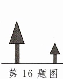 16. 如图,有两棵树,一棵高12米,另一棵高6米,两树相距8米. 一只鸟从一棵树的树梢飞到另一棵树的树梢,则小鸟至少飞行______米.