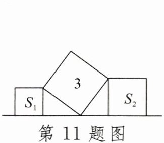 11. 在直线上依次摆放着三个正方形,三个正方形的面积依次是$S_{1}$,3,$S_{2}$,则( )