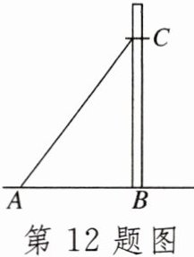 12. 如图,从电线杆上离地面5m的$C处向地面A$处拉一条长为7m的钢缆,则地面$A处到电线杆底部B$的距离是( )
