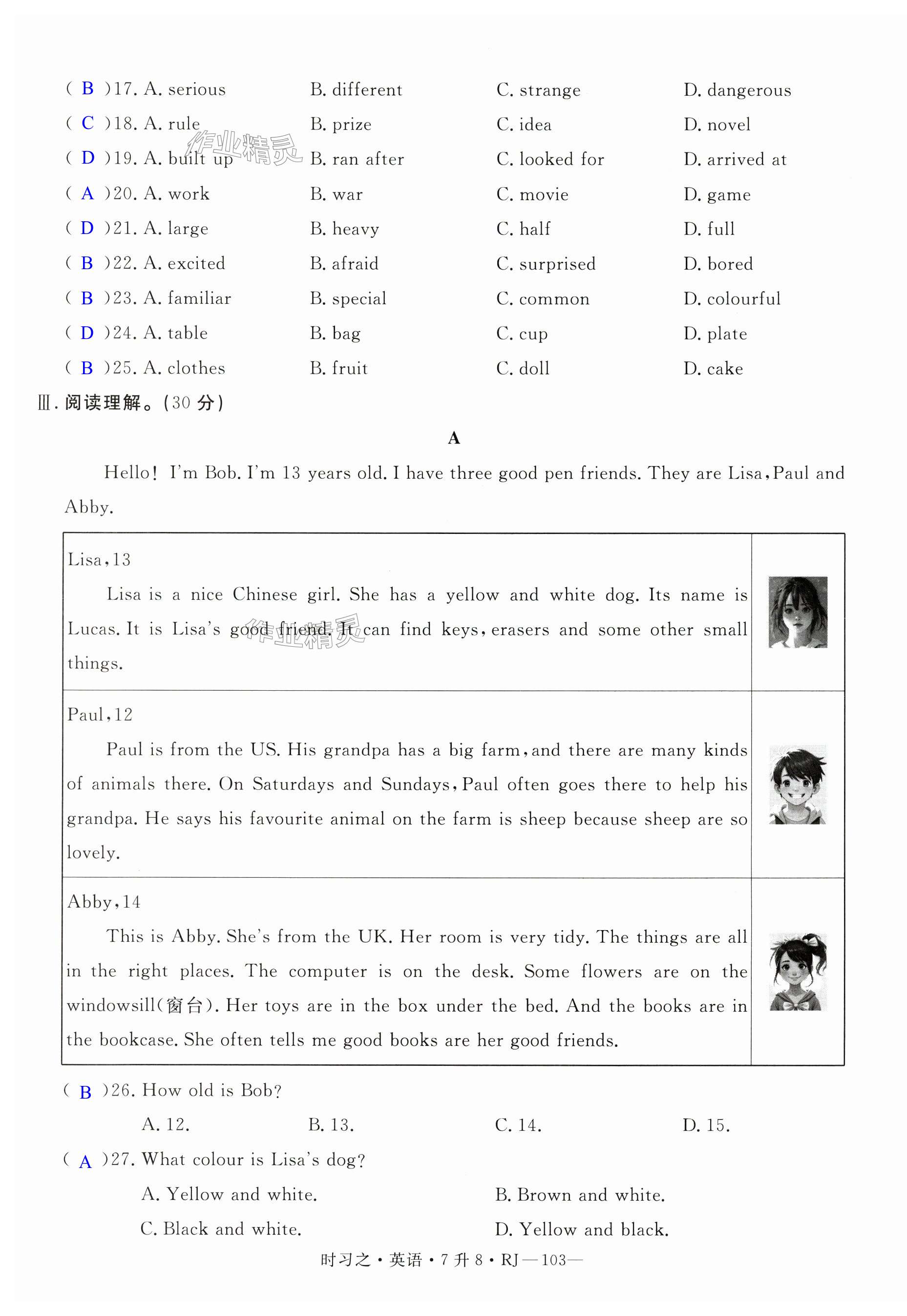 注:目前有些书本章节名称可能整理的还不是很完善,但都是按照顺序排列的,请同学们按照顺序仔细查找。练习册 2025年时习之暑假衔接七年级英语人教版 答案主要是用来给同学们做完题方便对答案用的,请勿直接抄袭。