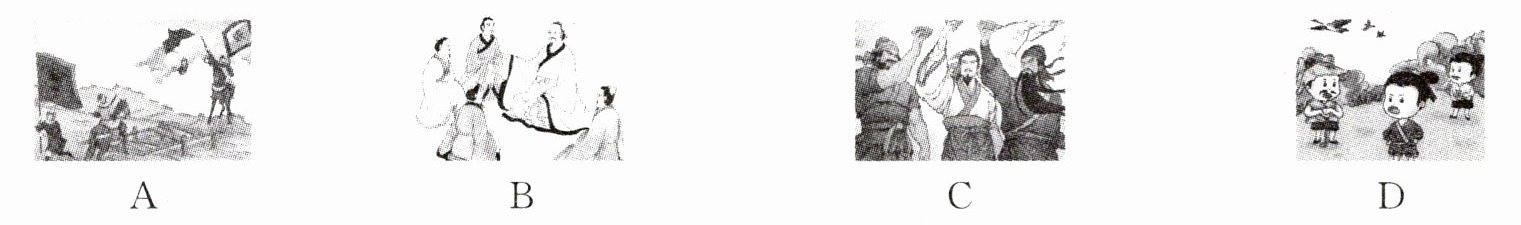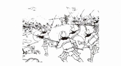They went to a small place to talk, where they met Guan Yu, a tall and strong man who also wanted to help. The three became friends and decided to work together. They went to Zhang Fei's home, promised to be brothers, and said they would fight for$^{③}$ the country. Liu Bei was the oldest, Guan Yu was second, and Zhang Fei was the youngest.