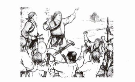 At the end of the Eastern Han Dynasty, the rulers were not good, and people were very poor because they didn't have enough food. Zhang Jiao and his brothers raised a big army called the Yellow Turban Army because they wore the yellow cloth on their heads. The army became very big, and the emperor was afraid. He told his men to protect$^{①}$ the country.