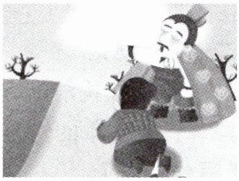 Cao Cao thought, “We can't stay here. We must find a way to leave!” He looked at the dry trees. Then he had an idea. He stood on a high place. He pointed forward and shouted, “There is water!”