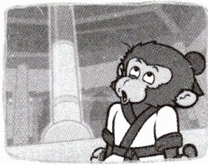 Wukong is looking for a powerful weapon$^{①}$. He asks a gibbon$^{②}$, "My swords and spears$^{③}$ are too light. I need something heavier." The gibbon remembers something and says, "There's a Dragon King in the sea. He might have a heavy weapon for you." Wukong says, "Great idea! I'll go there right now."