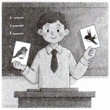 Teacher: Here are two birds. One is a swallow ②, and the other is a sparrow ③. Now who can tell us which is which?